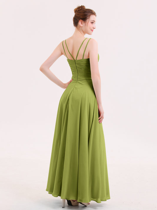 Babaroni JennyJenny Largo Vestidos De Dama De Honor Con Corpino Plisado Verde Oliva