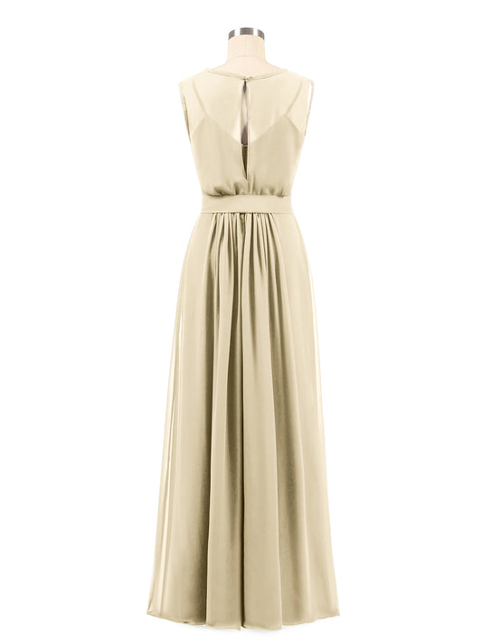 Babaroni JessieJessie Envoltura Sintetica Largo Gasa Corte Con Cinturon Champán Tallas Grandes