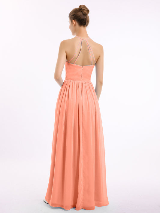 Babaroni JodieJodie Cabestro Cuello Alto Gasa Vestido De Dama De Honor Atardecer