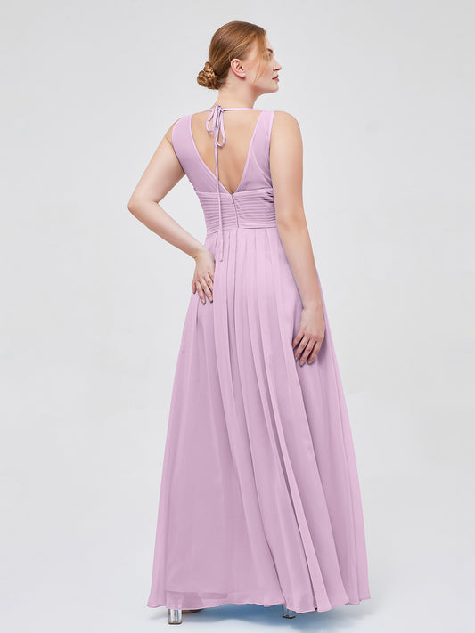 Babaroni JodieJodie Cabestro Cuello Alto Gasa Vestido De Dama De Honor Azalea
