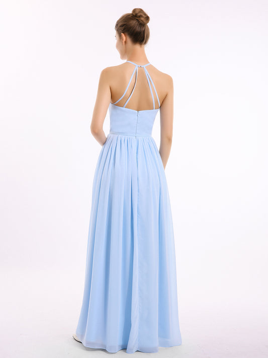 Babaroni JodieJodie Cabestro Cuello Alto Gasa Vestido De Dama De Honor Azul Cielo
