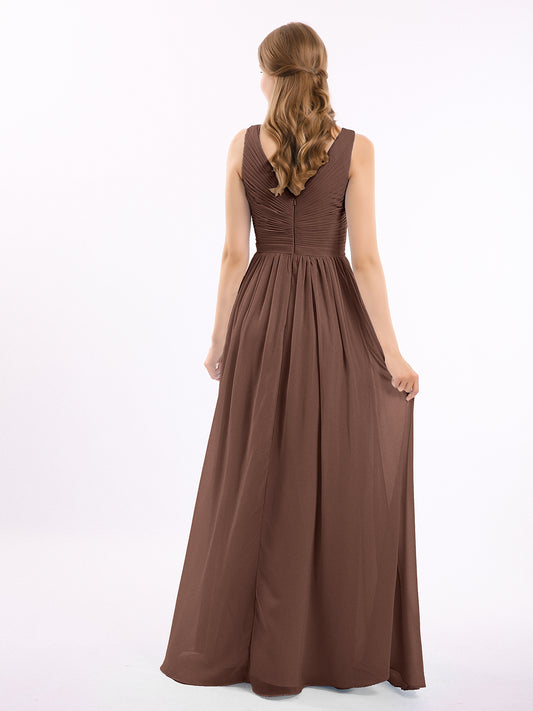 Babaroni JosephineJosephine Gasa Escote En V Vestido Con Falda En Cascada Chocolate Tallas Grandes