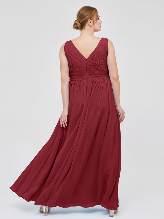 Babaroni JosephineJosephine Gasa Escote En V Vestido Con Falda En Cascada Borgoña Tallas Grandes