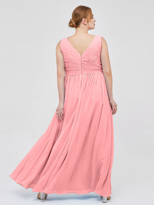 Babaroni JosephineJosephine Gasa Escote En V Vestido Con Falda En Cascada Coral Tallas Grandes