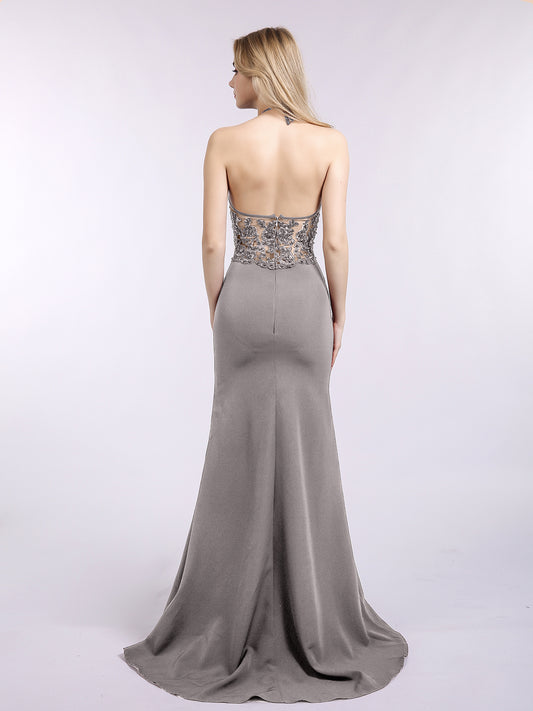 Babaroni JoyceJoyce Cabestro Sirena Sexy Vestido Con Apertura Plata Tallas Grandes