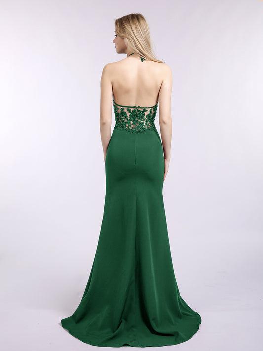Babaroni JoyceJoyce Cabestro Sirena Sexy Vestido Con Apertura Verde Oscuro