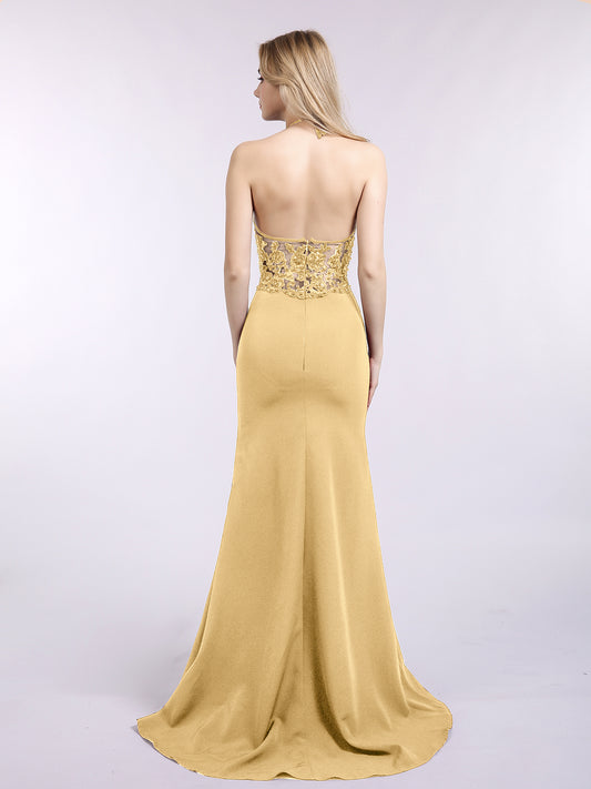 Babaroni JoyceJoyce Cabestro Sirena Sexy Vestido Con Apertura Oro Tallas Grandes