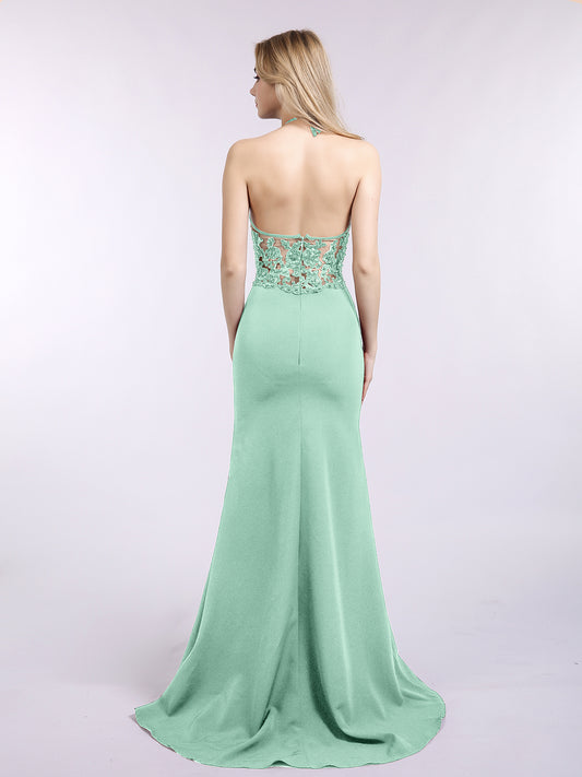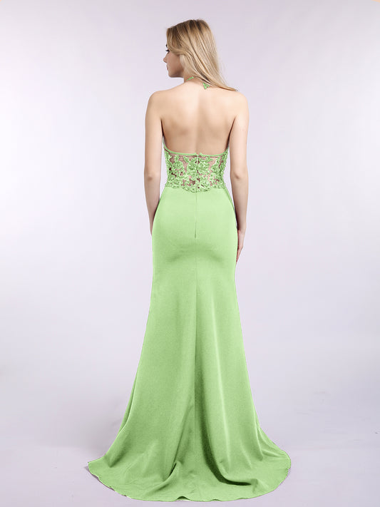 Babaroni JoyceJoyce Cabestro Sirena Sexy Vestido Con Apertura Verde Menta Tallas Grandes