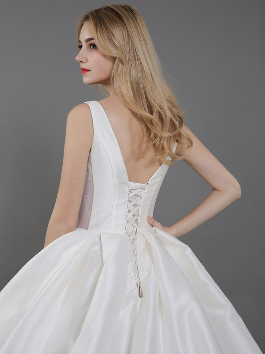 Judith Corte De Baile Escote En V Saten Real Vestido De Novia Marfil Tallas Grandes