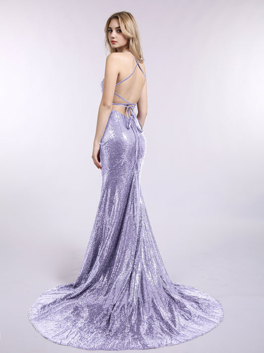Babaroni JulieJulie Sin Espalda Sirena Lentejuelas Corte Con Tren Lilac