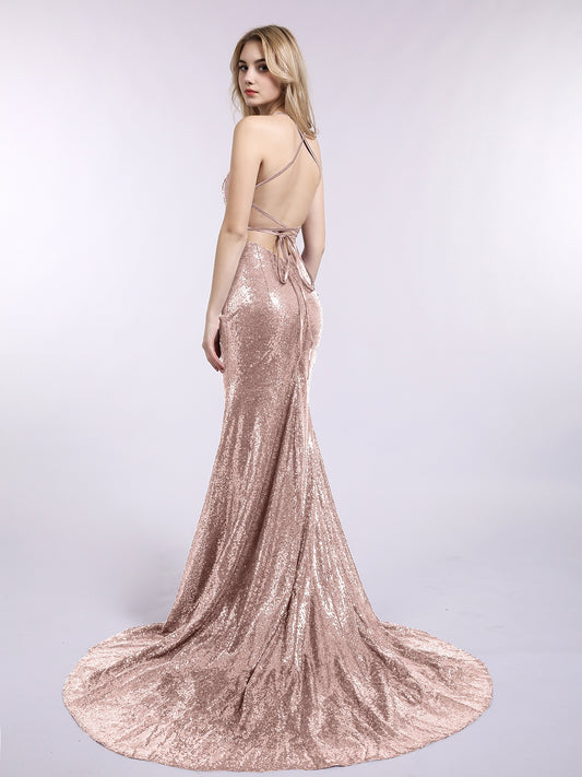 Babaroni JulieJulie Sin Espalda Sirena Lentejuelas Corte Con Tren Rose Gold