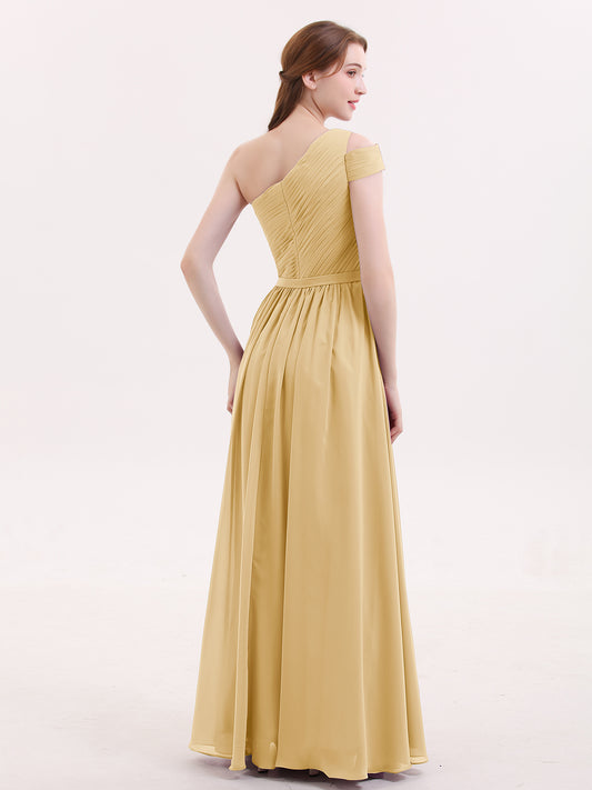 Babaroni JulietJuliet Un Hombro Corte De Dama De Honor Con Faja Oro