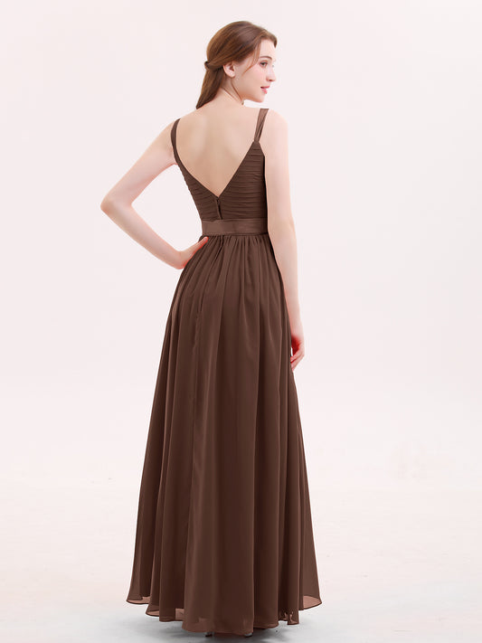 Babaroni KamaKama Escote En V Vestido De Dama De Honor Con Saten Faja Lazo Chocolate