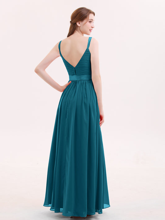 Babaroni KamaKama Escote En V Vestido De Dama De Honor Con Saten Faja Lazo Azul Océano Tallas Grandes