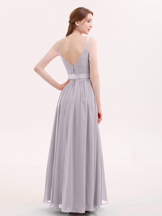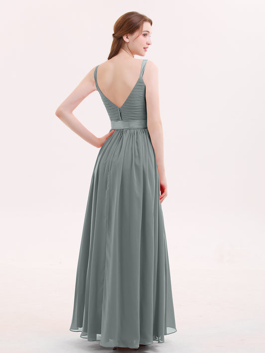 Babaroni KamaKama Escote En V Vestido De Dama De Honor Con Saten Faja Lazo Gris Acero Tallas Grandes