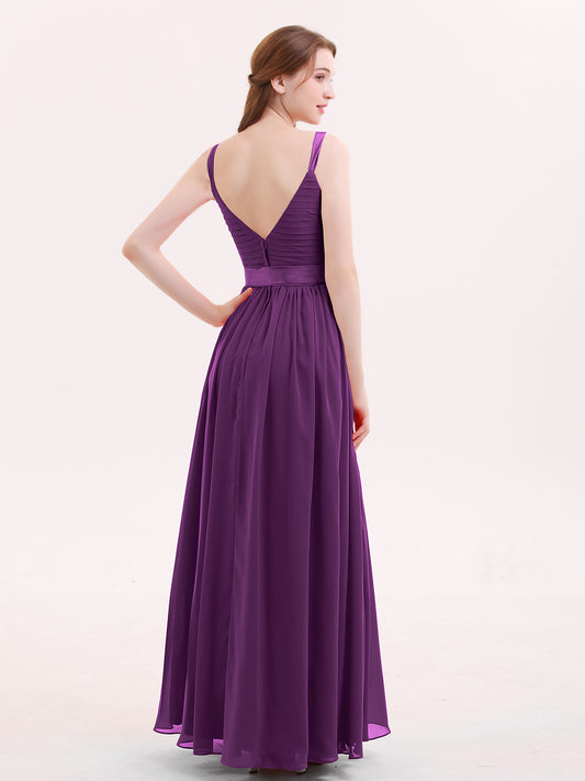 Babaroni KamaKama Escote En V Vestido De Dama De Honor Con Saten Faja Lazo Uva Tallas Grandes