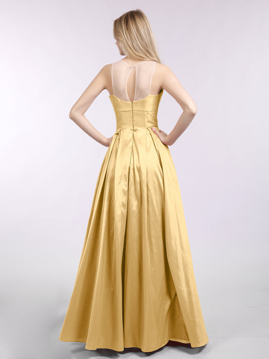 Babaroni KarenKaren Corte A Tafetan Largo Vestido Con Bolsillo Oro Tallas Grandes