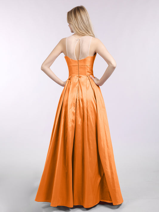 Babaroni KarenKaren Corte A Tafetan Largo Vestido Con Bolsillo Naranja