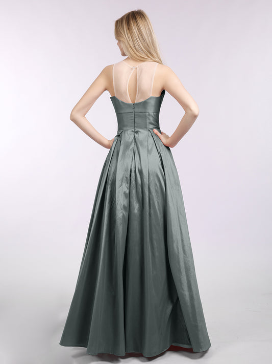 Babaroni KarenKaren Corte A Tafetan Largo Vestido Con Bolsillo Gris Acero