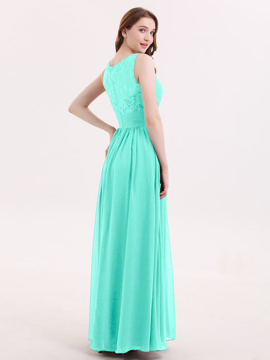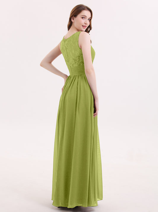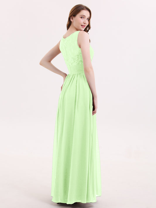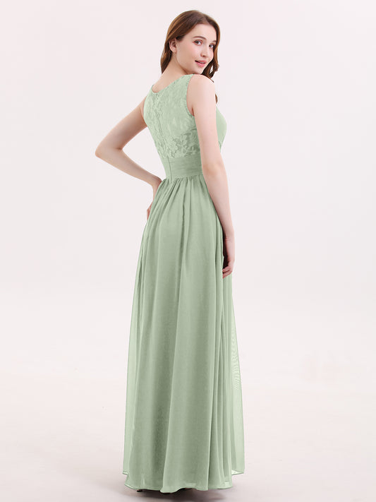 Babaroni AdalynAdalyn Escote En V Gasa Y Encaje Maxi Corte De Dama De Honor Salvia