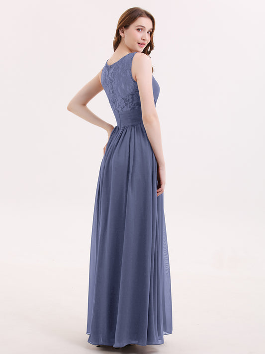 Babaroni AdalynAdalyn Escote En V Gasa Y Encaje Maxi Corte De Dama De Honor Tormenta