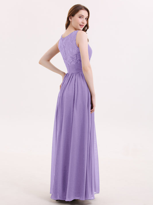 Babaroni AdalynAdalyn Escote En V Gasa Y Encaje Maxi Corte De Dama De Honor Spa