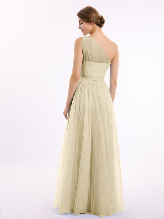 Babaroni AngelinaAngelina Un Hombro Malla Corte De Dama De Honor De Fiesta De Boda Champán