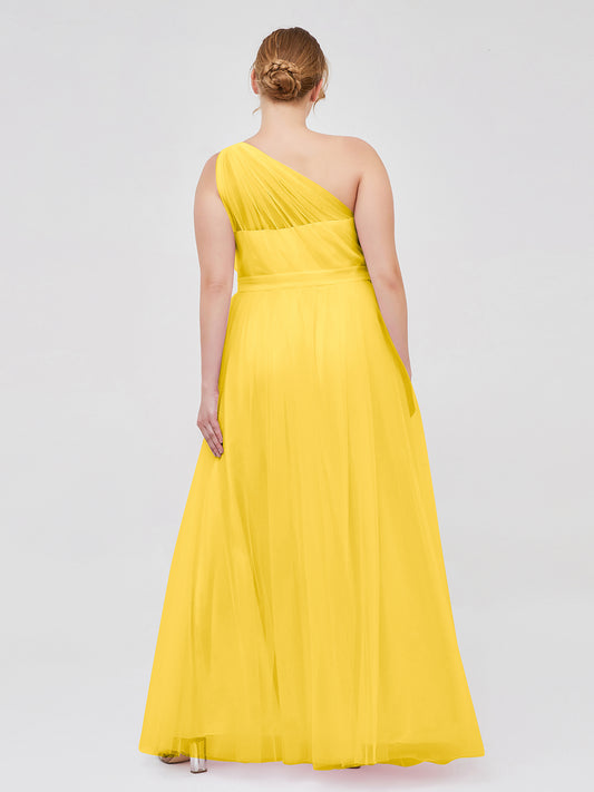 Babaroni AngelinaAngelina Un Hombro Malla Corte De Dama De Honor De Fiesta De Boda Caléndula Tallas Grandes