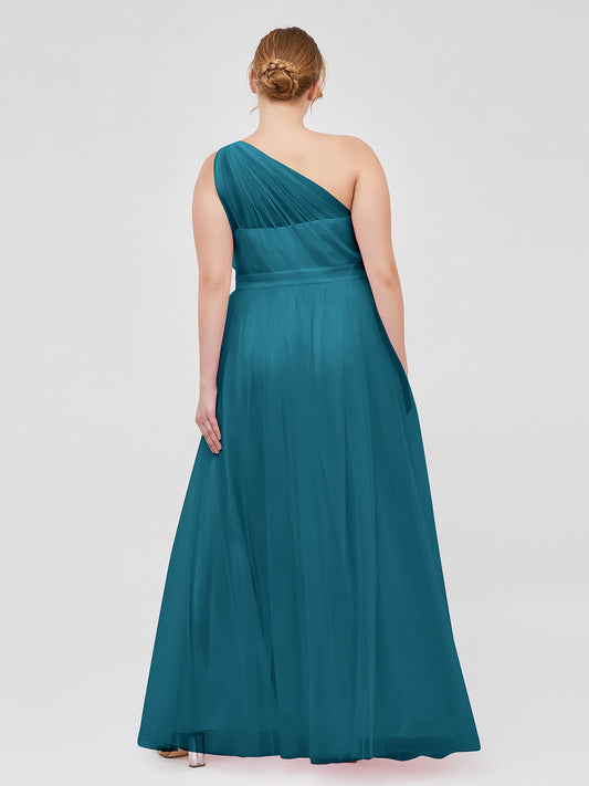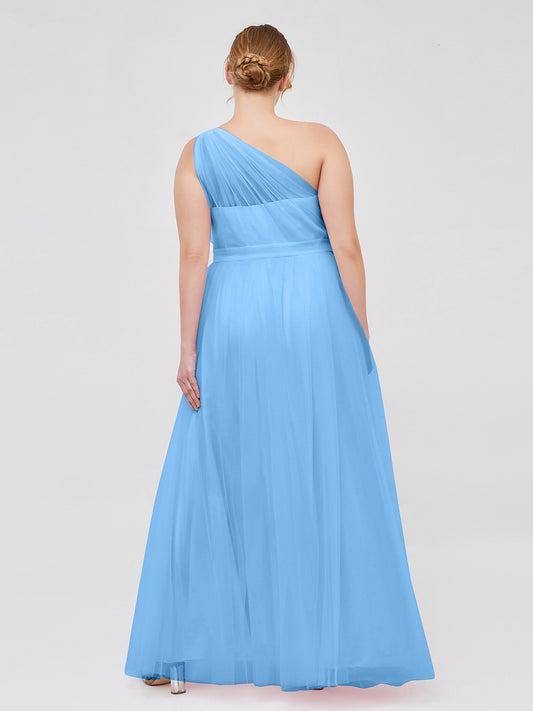 Babaroni AngelinaAngelina Un Hombro Malla Corte De Dama De Honor De Fiesta De Boda Azul Océano Tallas Grandes