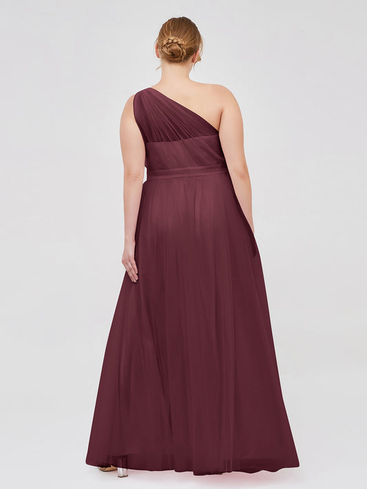 Babaroni AngelinaAngelina Un Hombro Malla Corte De Dama De Honor De Fiesta De Boda Cabernet Tallas Grandes