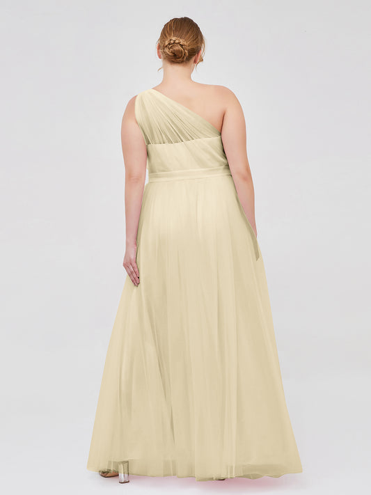 Babaroni AngelinaAngelina Un Hombro Malla Corte De Dama De Honor De Fiesta De Boda Champán Tallas Grandes