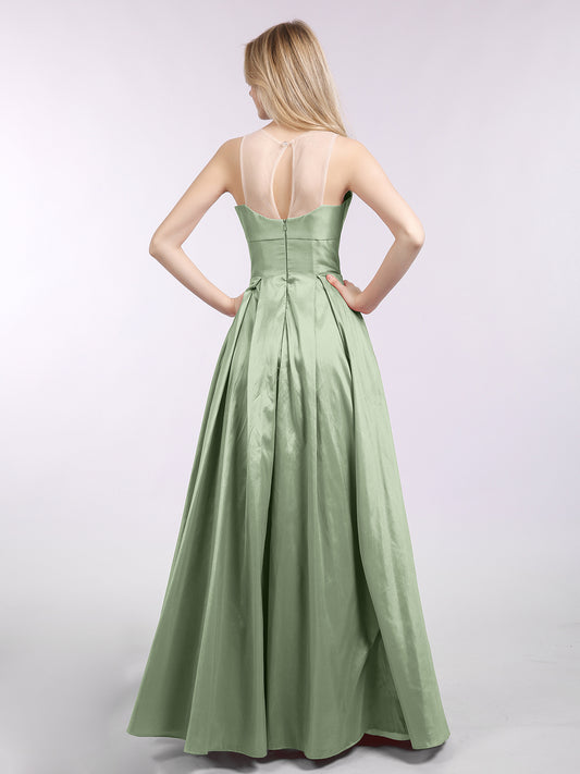 Babaroni KarenKaren Corte A Tafetan Largo Vestido Con Bolsillo Salvia