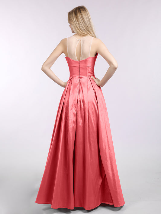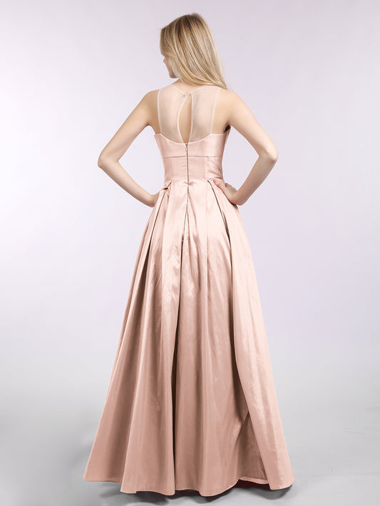 Babaroni KarenKaren Corte A Tafetan Largo Vestido Con Bolsillo Rosa Perlado