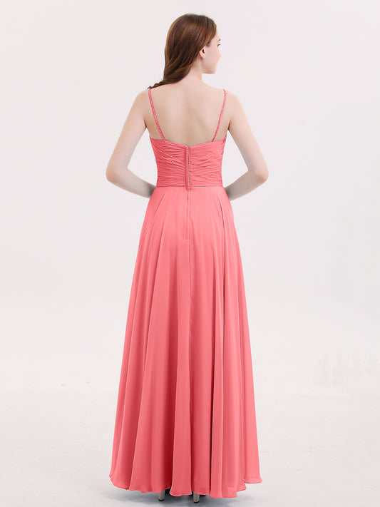 Babaroni KaridaKarida Tirante Espagueti Gasa Vestido Con Escote En V Rosa Perlado Tallas Grandes