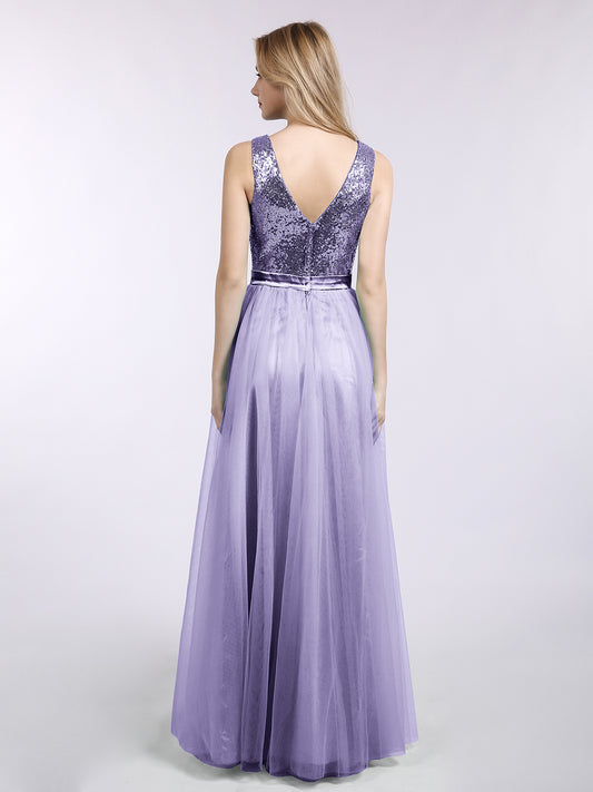Babaroni KellyKelly Lentejuelas Y Tul Largo Vestido Con Escote En V Lilac