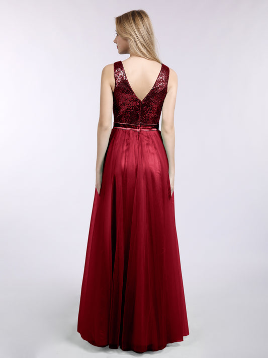 Babaroni KellyKelly Lentejuelas Y Tul Largo Vestido Con Escote En V Borgoña