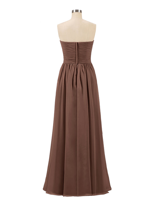 Babaroni KimberleyKimberley Sin Tirante Gasa Largo Vestido De Dama De Honor Chocolate Tallas Grandes