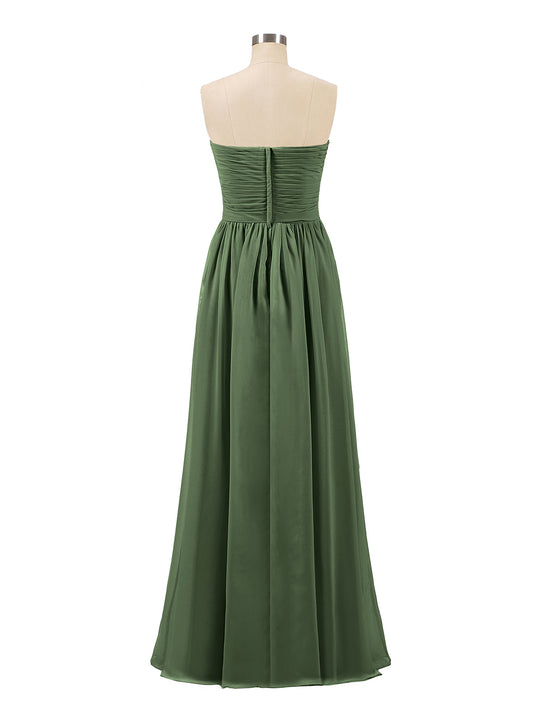 Babaroni KimberleyKimberley Sin Tirante Gasa Largo Vestido De Dama De Honor Verde Oliva Tallas Grandes
