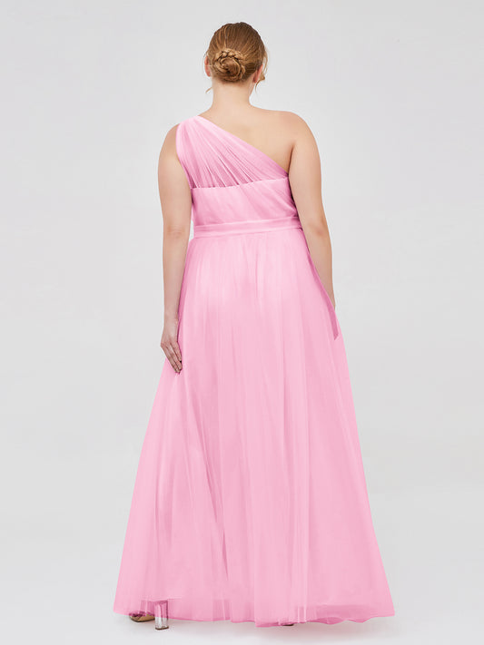 Babaroni AngelinaAngelina Un Hombro Malla Corte De Dama De Honor De Fiesta De Boda Rosa Claro Tallas Grandes