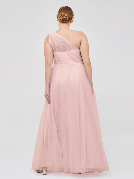 Babaroni AngelinaAngelina Un Hombro Malla Corte De Dama De Honor De Fiesta De Boda Rosa Polvoriento Tallas Grandes