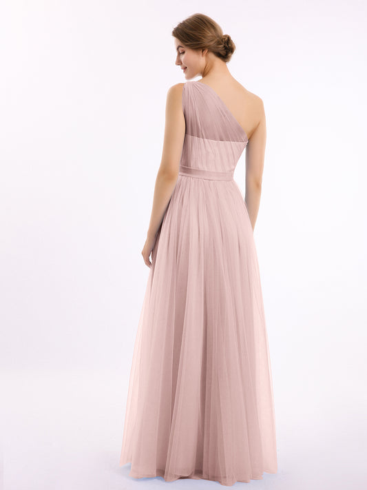 Babaroni AngelinaAngelina Un Hombro Malla Corte De Dama De Honor De Fiesta De Boda Rosa Polvoriento