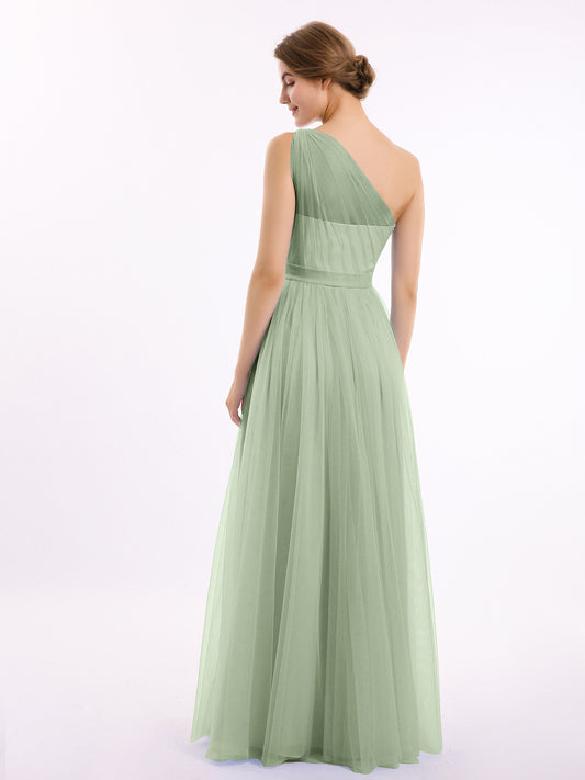 Babaroni AngelinaAngelina Un Hombro Malla Corte De Dama De Honor De Fiesta De Boda Salvia Polvorienta