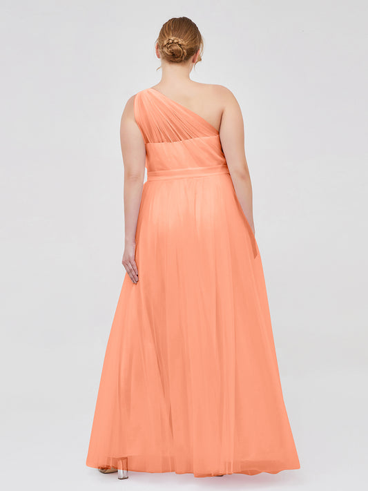 Babaroni AngelinaAngelina Un Hombro Malla Corte De Dama De Honor De Fiesta De Boda Papaya Tallas Grandes