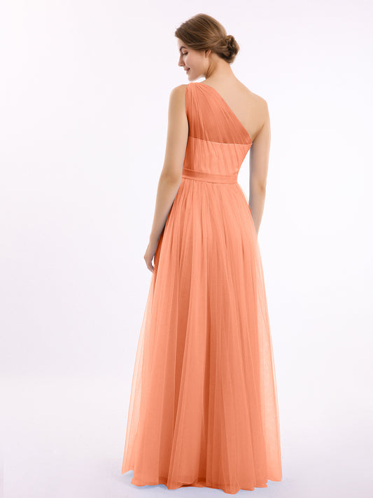 Babaroni AngelinaAngelina Un Hombro Malla Corte De Dama De Honor De Fiesta De Boda Papaya