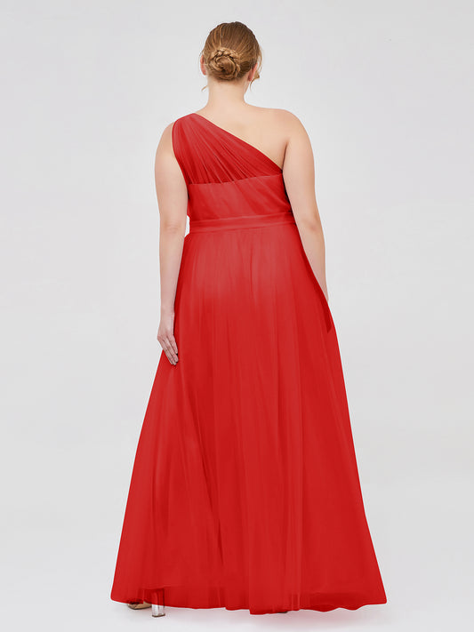Babaroni AngelinaAngelina Un Hombro Malla Corte De Dama De Honor De Fiesta De Boda Rojo Tallas Grandes