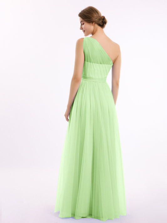 Babaroni AngelinaAngelina Un Hombro Malla Corte De Dama De Honor De Fiesta De Boda Salvia