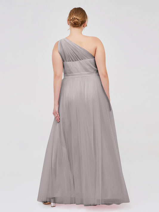 Babaroni AngelinaAngelina Un Hombro Malla Corte De Dama De Honor De Fiesta De Boda Plata Tallas Grandes