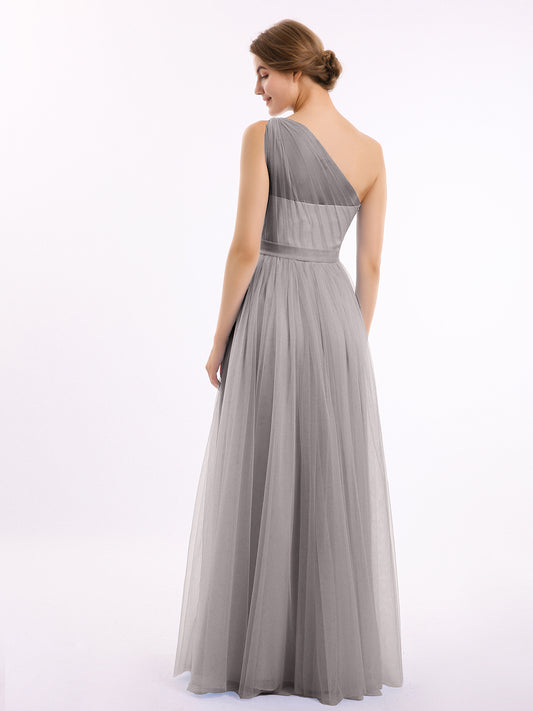 Babaroni AngelinaAngelina Un Hombro Malla Corte De Dama De Honor De Fiesta De Boda Plata