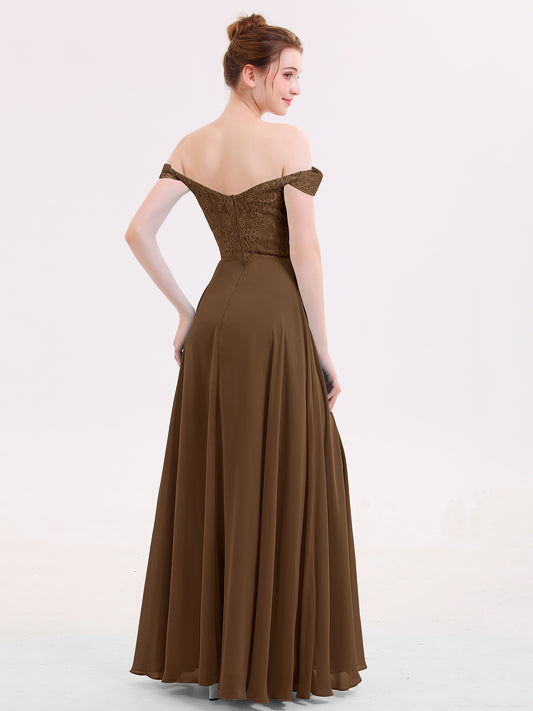 Babaroni LillianLillian Fuera Del Hombro Gasa Y Encaje Imperial Vestido Marrón Tallas Grandes