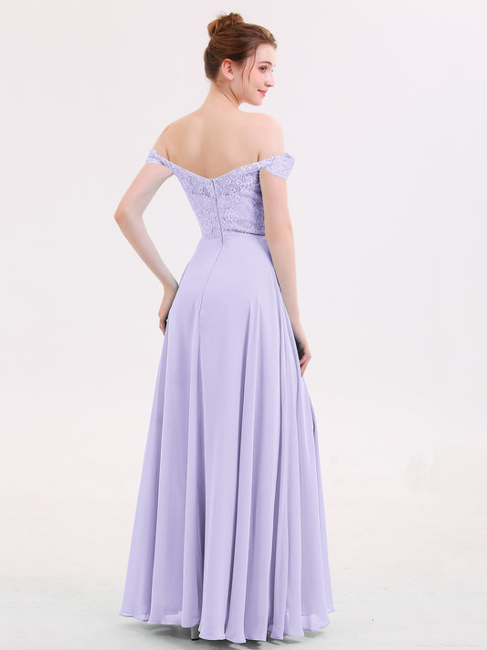 Babaroni LillianLillian Fuera Del Hombro Gasa Y Encaje Imperial Vestido Lavanda Tallas Grandes